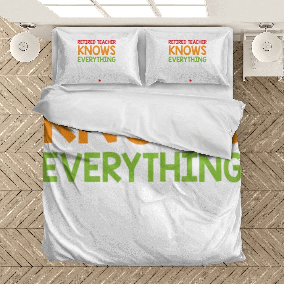 You are seeing a unique and impressive product Retired Teacher Knows Everything Bedding Sets For WHITE belong theme Bedding Sets at Printblur