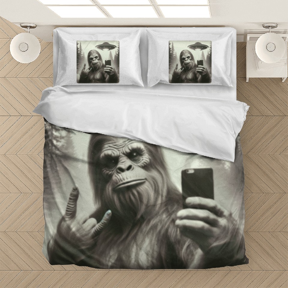 You're looking at the eye-catching product Retro Bigfoot Selfie with UFO Bedding Sets For WHITE belong theme Bedding Sets at Printblur