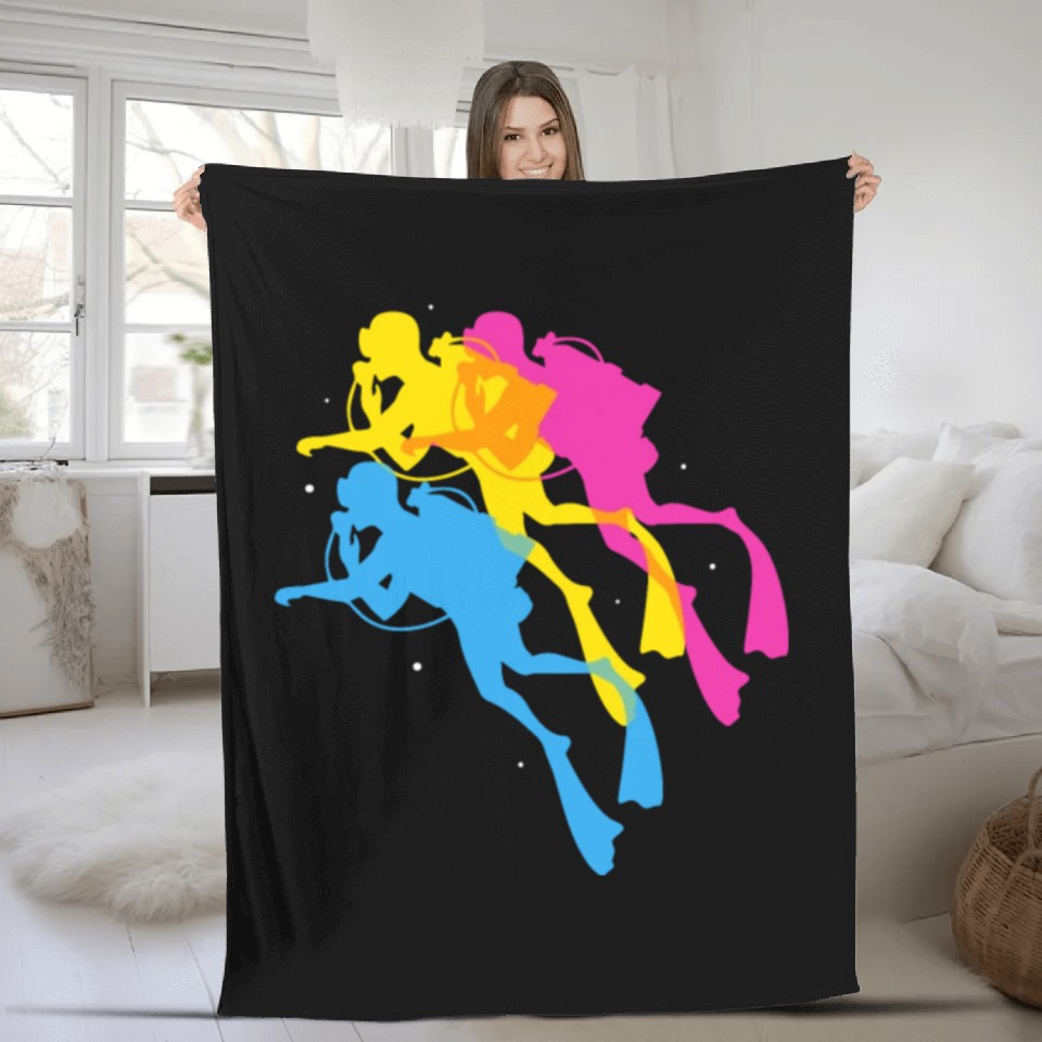 You are shopping for a stunning and trendy product Retro Colorful Scuba Diving Fleece Blankets For Fleece Blanket Black belong theme Fleece Blankets at Printblur