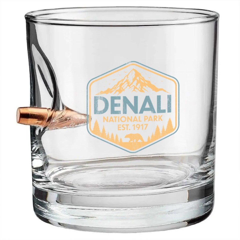 Own fascinating Retro Denali National Park Mountains Nature Bullet Whiskey Glasses or see more Bullet Whiskey Glasses products now from Printblur shop to enjoy your shopping time!