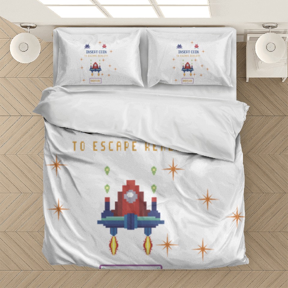 You are viewing an exclusive and elegant product Retro Gamer Bedding Sets - Insert Coin to Escape Reality For WHITE belong theme Bedding Sets at Printblur