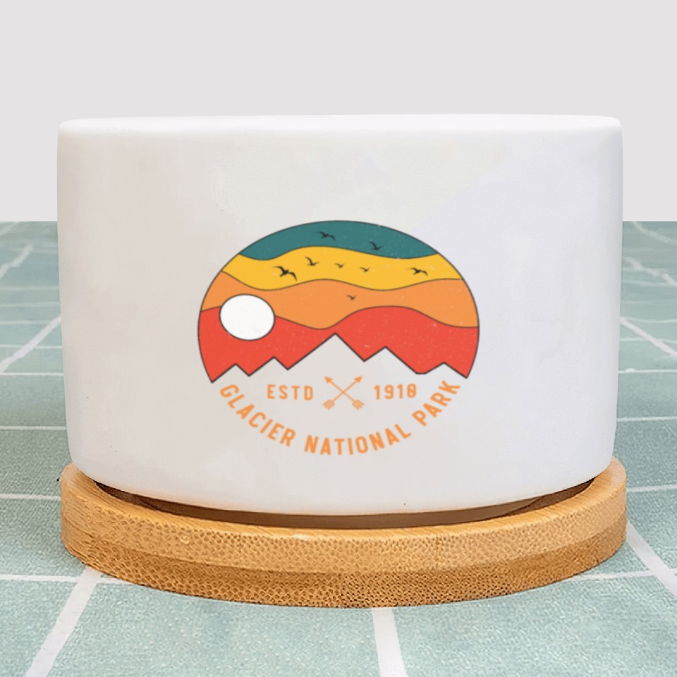 You're looking at the eye-catching product Retro Glacier National Park Montana Souvenir 80s Plant Pots For WHITE belong theme Plant Pots at Printblur