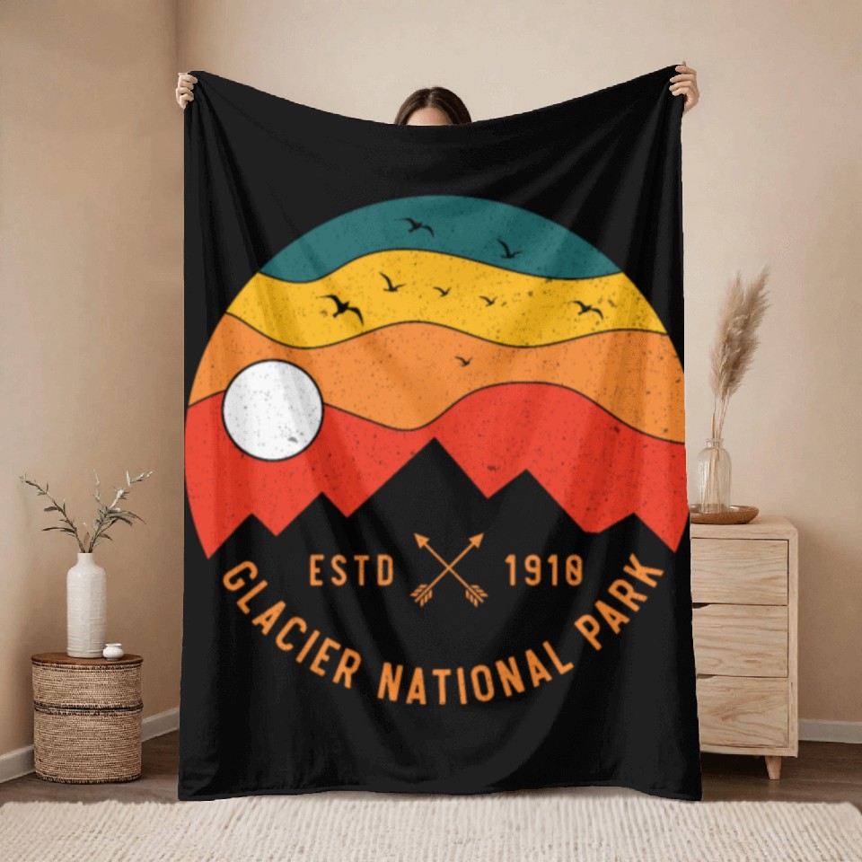 Buy eye-catching Retro Glacier National Park Montana Souvenir 80s Throw Blankets or see more Throw Blankets products at Printblur shop now to explore many surprises from our shop!