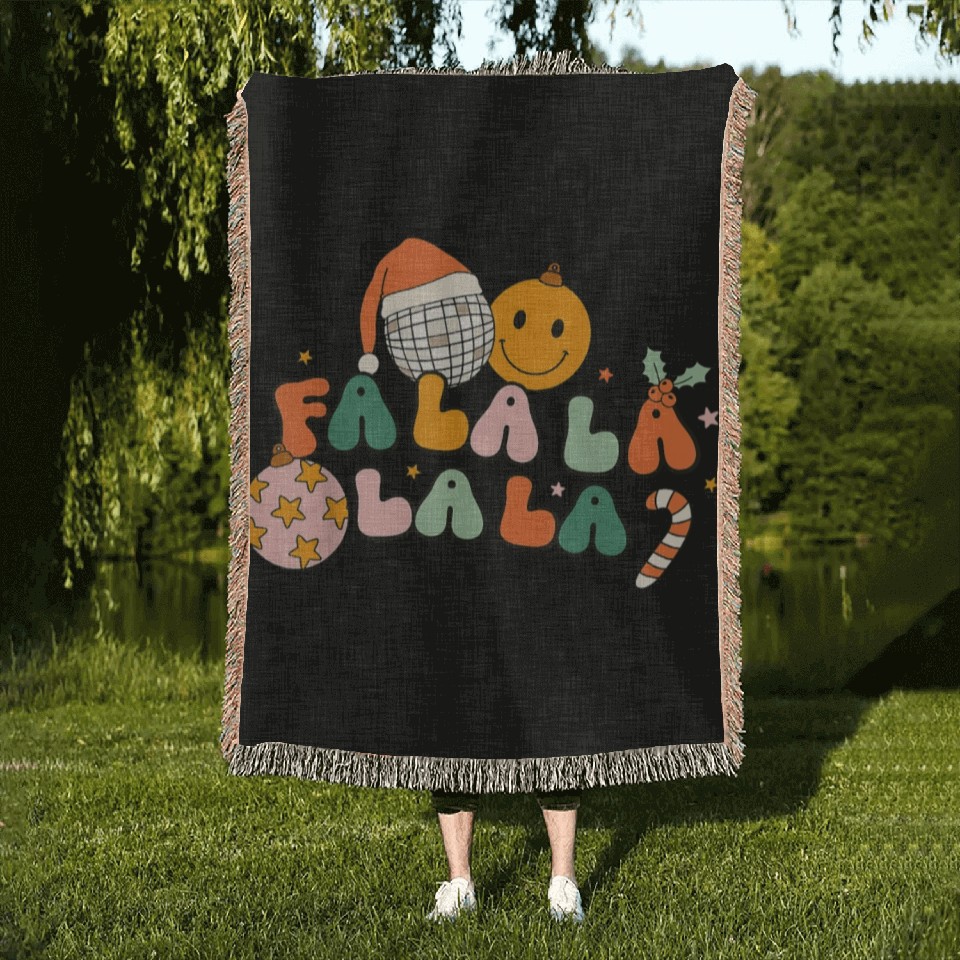 You are shopping for a stunning and trendy product Retro Groovy Fa La La Christmas Cute Santa Hat Woven Blankets For Black belong theme Woven Blankets at Printblur