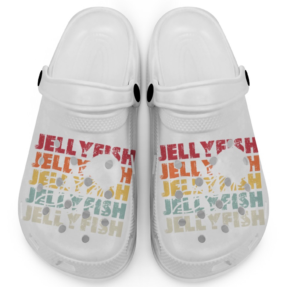 You're looking at the eye-catching product Retro Jellyfish Silhouette Men Women Ocean Lover Clogs For Kids WHITE belong theme Clogs at Printblur