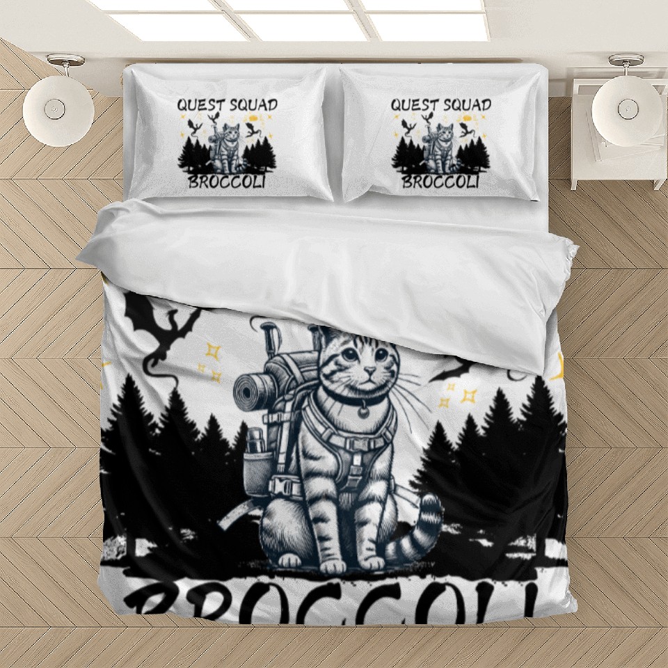Buy eye-catching Retro Quest Fantasy Squad Broccoli Funny Cat Lover Bedding Sets or see more Bedding Sets products at Printblur shop now to explore many surprises from our shop!