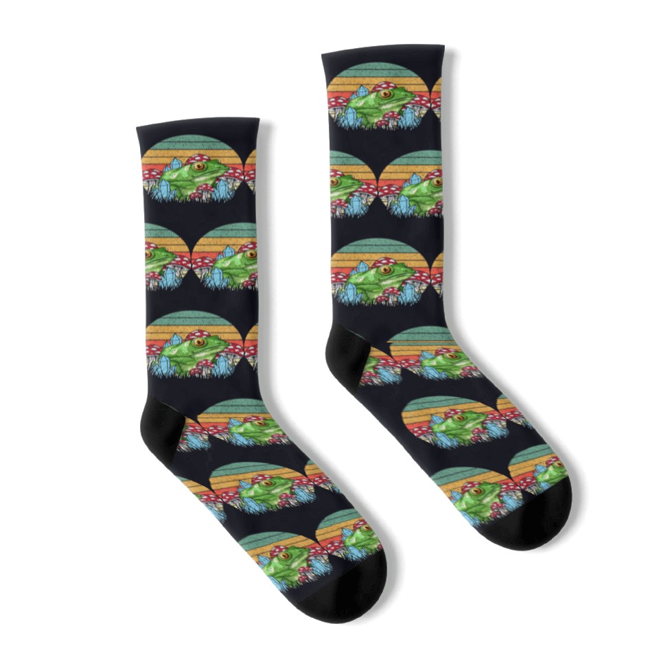 You're searching for a one-of-a-kind product Retro Realistic Toad Frog Mushrooms Socks For Black belong theme Socks at Printblur