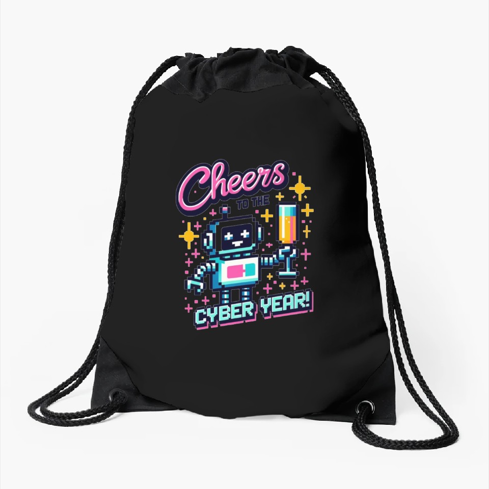 You are contemplating one of the best-selling products Retro Robot New Year's Toast - Cyber Champagne Fun Drawstring Bags For Black belong theme Drawstring Bags at Printblur