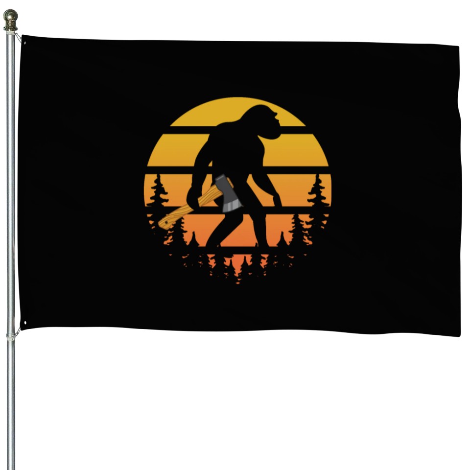You're searching for a one-of-a-kind product Retro Sasquatch Axe Throwing For Axe Thrower House Flags For Black belong theme House Flags at Printblur