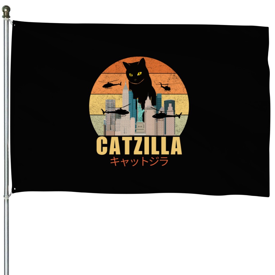 You're looking at the eye-catching product Retro Vintage Catzilla Japanese Cute Cat Lover House Flags For Black belong theme House Flags at Printblur