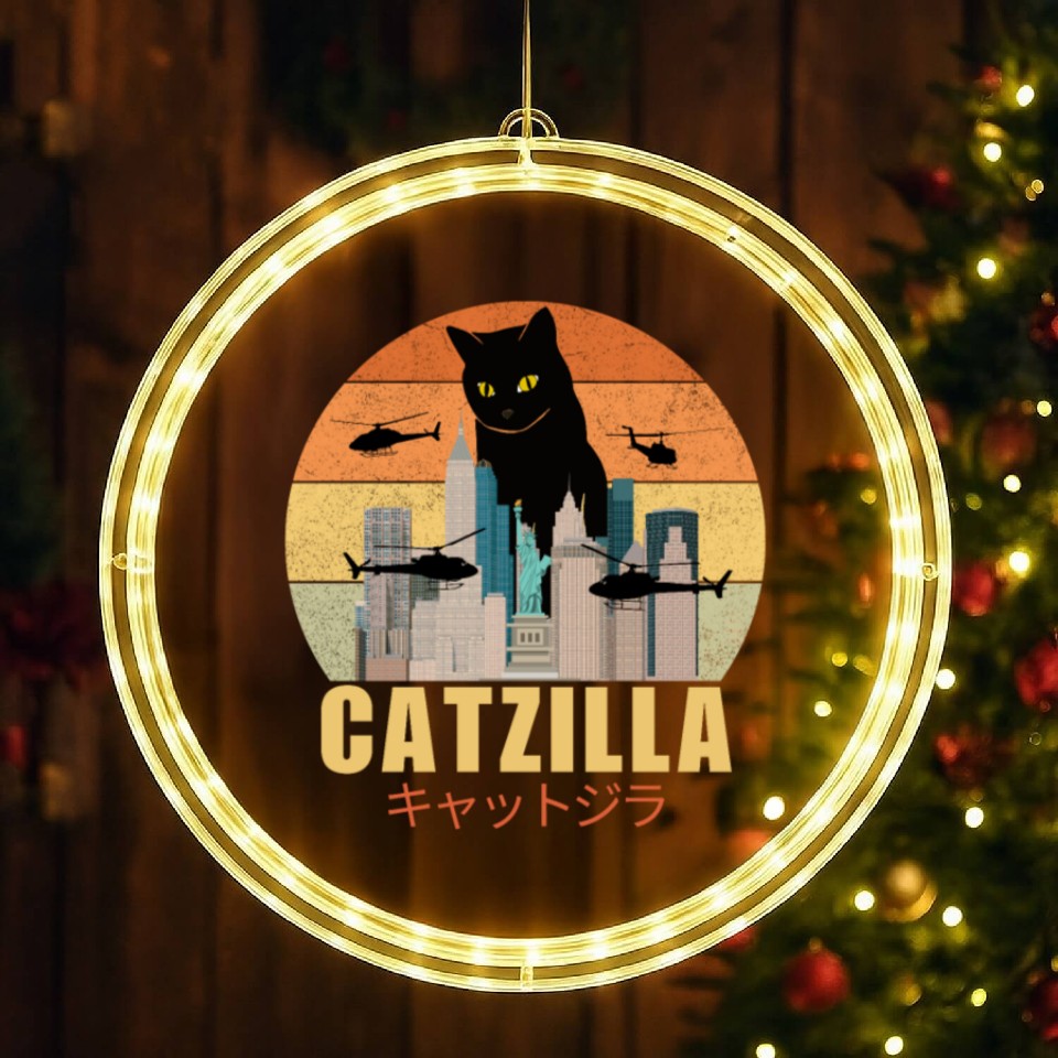 You're looking at the eye-catching product Retro Vintage Catzilla Japanese Cute Cat Lover LED Christmas Window Lights For belong theme LED Christmas Window Lights at Printblur