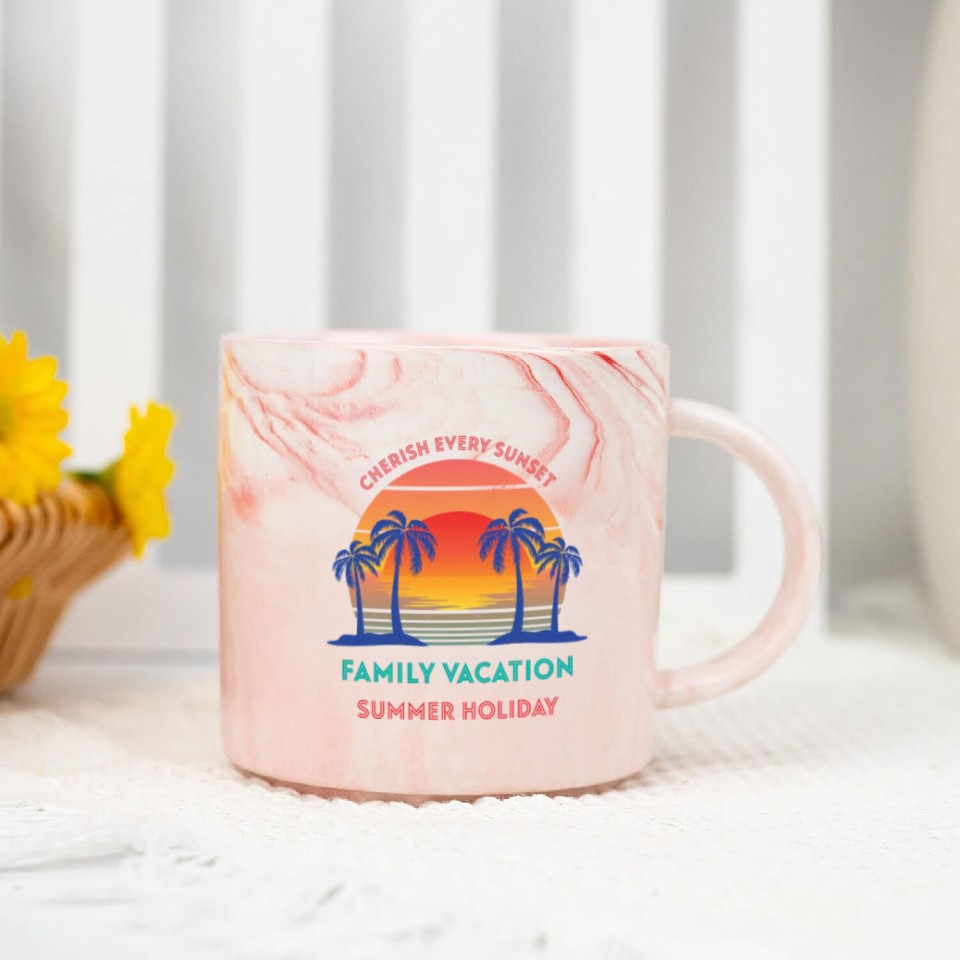 You are seeing a unique and impressive product Retro Vintage Family Vacation Cherish Every Sunset Marble Mugs For Pink belong theme Marble Mugs at Printblur