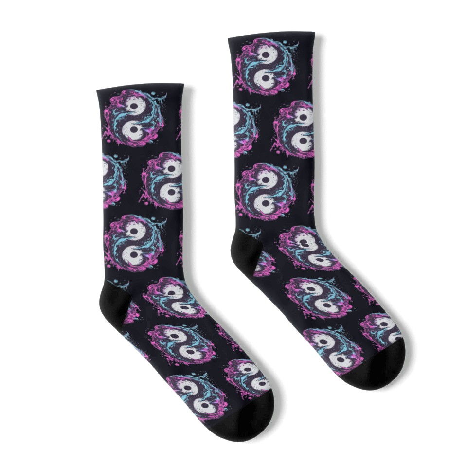 Buy stunning Retro Yin Yang Blue and Pink Splash Socks or see more Socks products at Printblur right now to receive many amazing discounts!