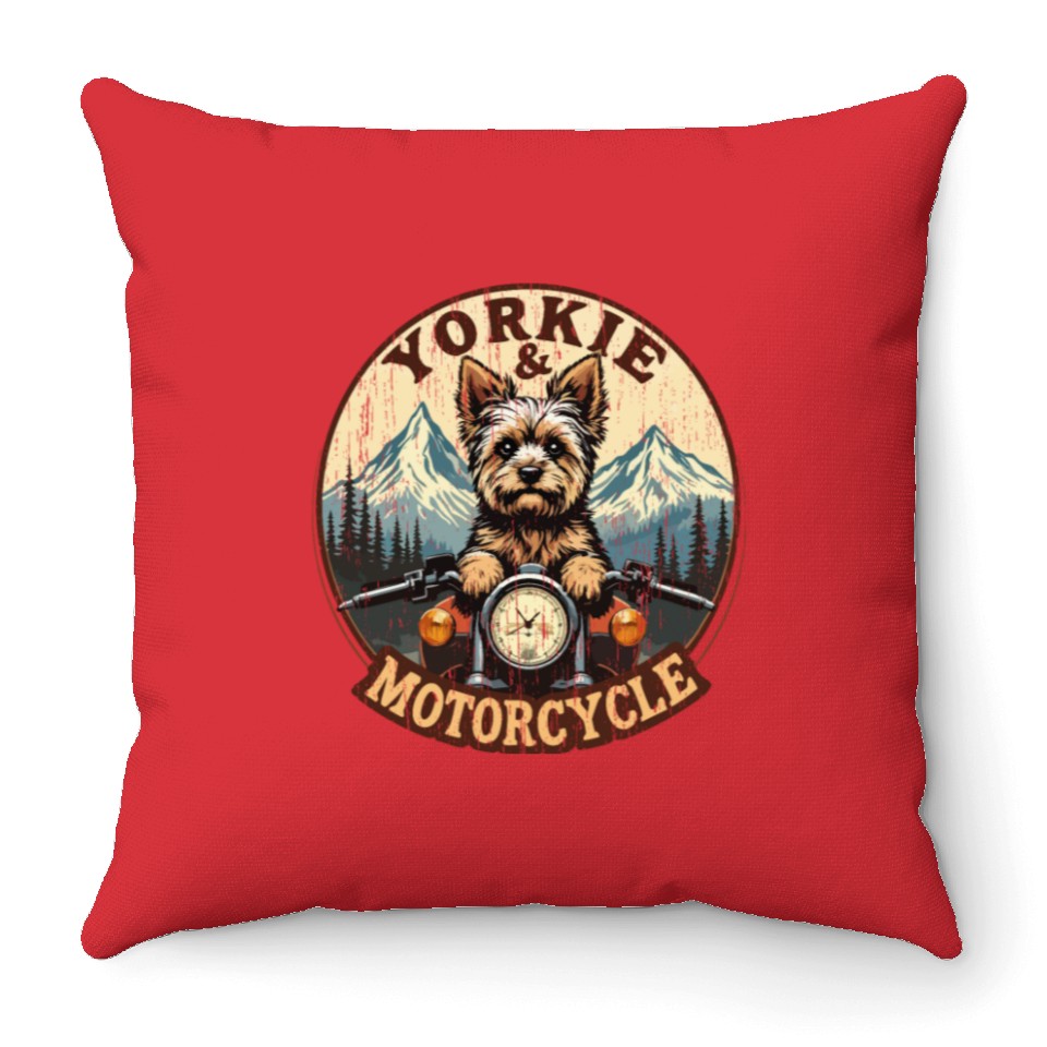You are shopping for a stunning and trendy product Retro Yorkie And Motorcycle Dog Lovers Funny Motor Throw Pillows For Cover Only Red belong theme Throw Pillows at Printblur