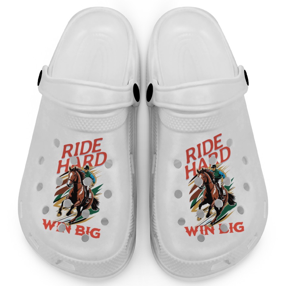 Ride Hard Win Big Horse Racing Clogs