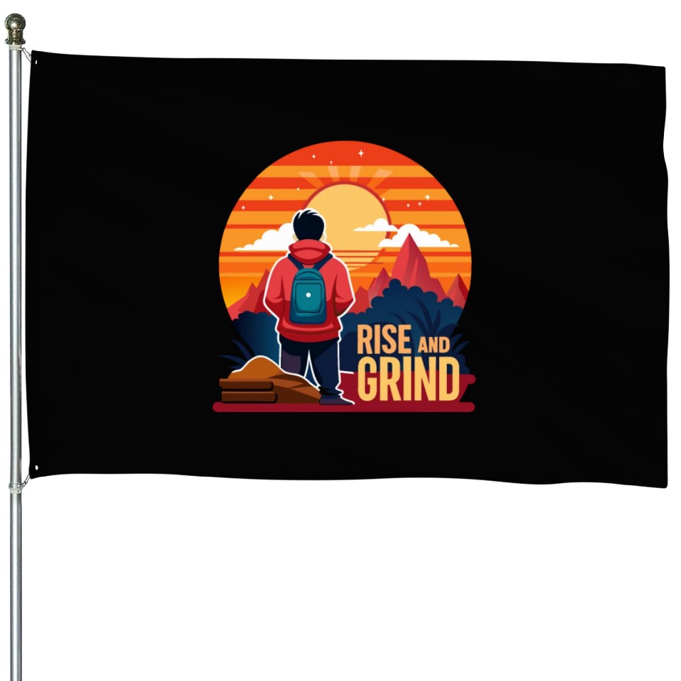 Buy eye-catching Rise and Grind - Sunrise Hustle Motivation House Flags or see more House Flags products at Printblur shop now to explore many surprises from our shop!