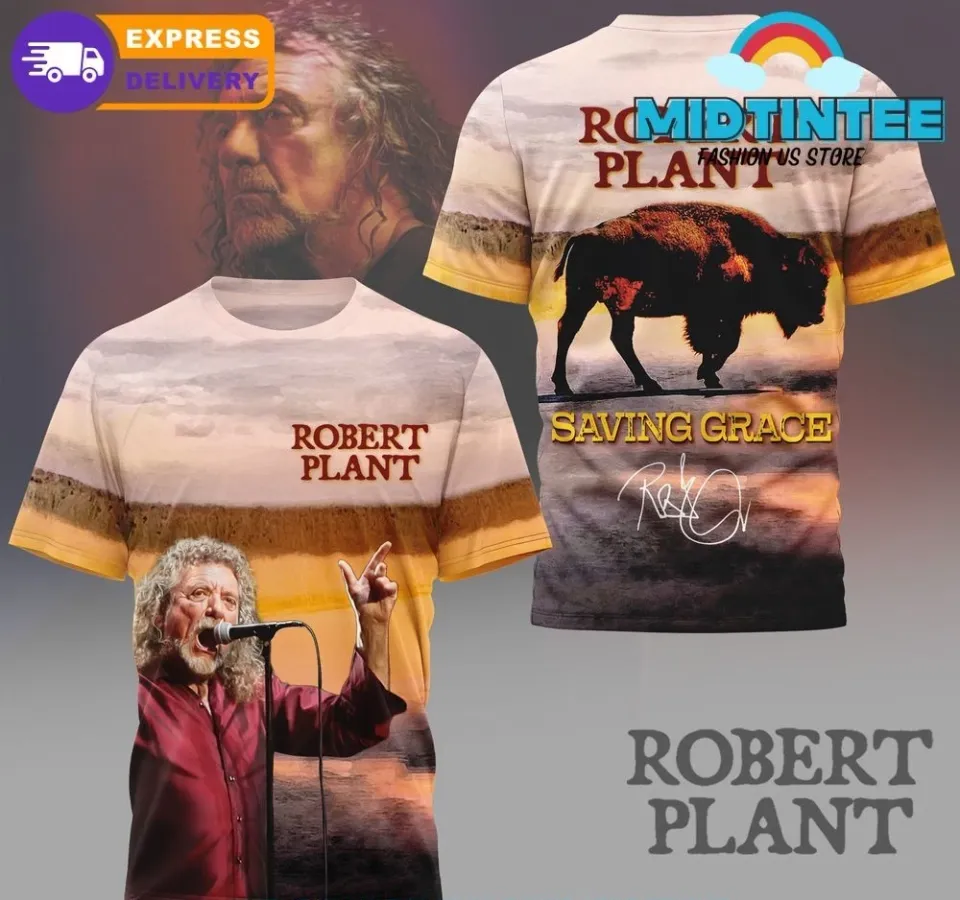 Buy eye-catching Robert Plant Saving Grace 2025 AOP T-Shirt or see more 3D T Shirts products at Printblur shop now to explore many surprises from our shop!
