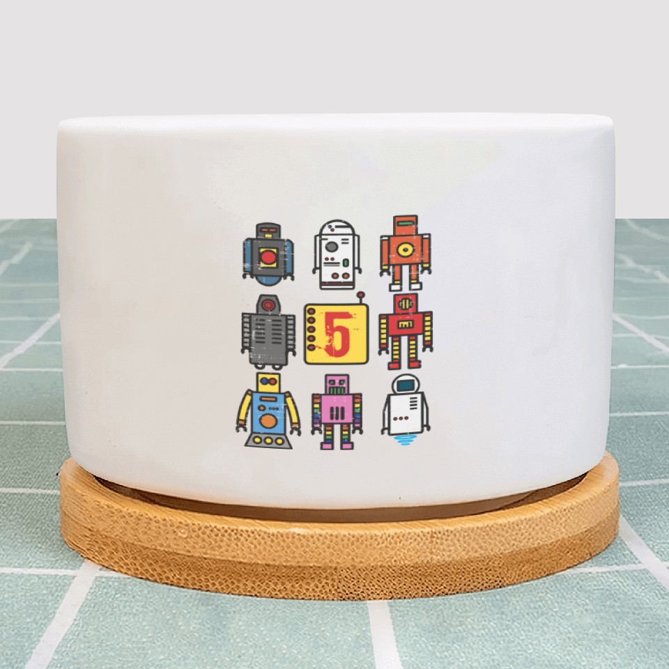 You are viewing one of the trendiest products Robot 5th Birthday - Retro Robotics with number Plant Pots For WHITE belong theme Plant Pots at Printblur