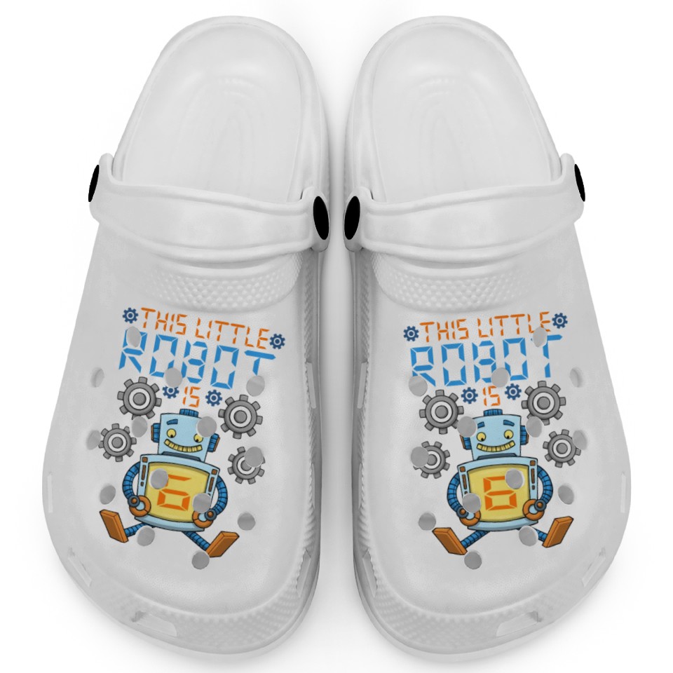 You are contemplating one of the best-selling products Robot Birthday Outfit Boy 6th Robot Birthday Party Clogs For Kids WHITE belong theme Clogs at Printblur