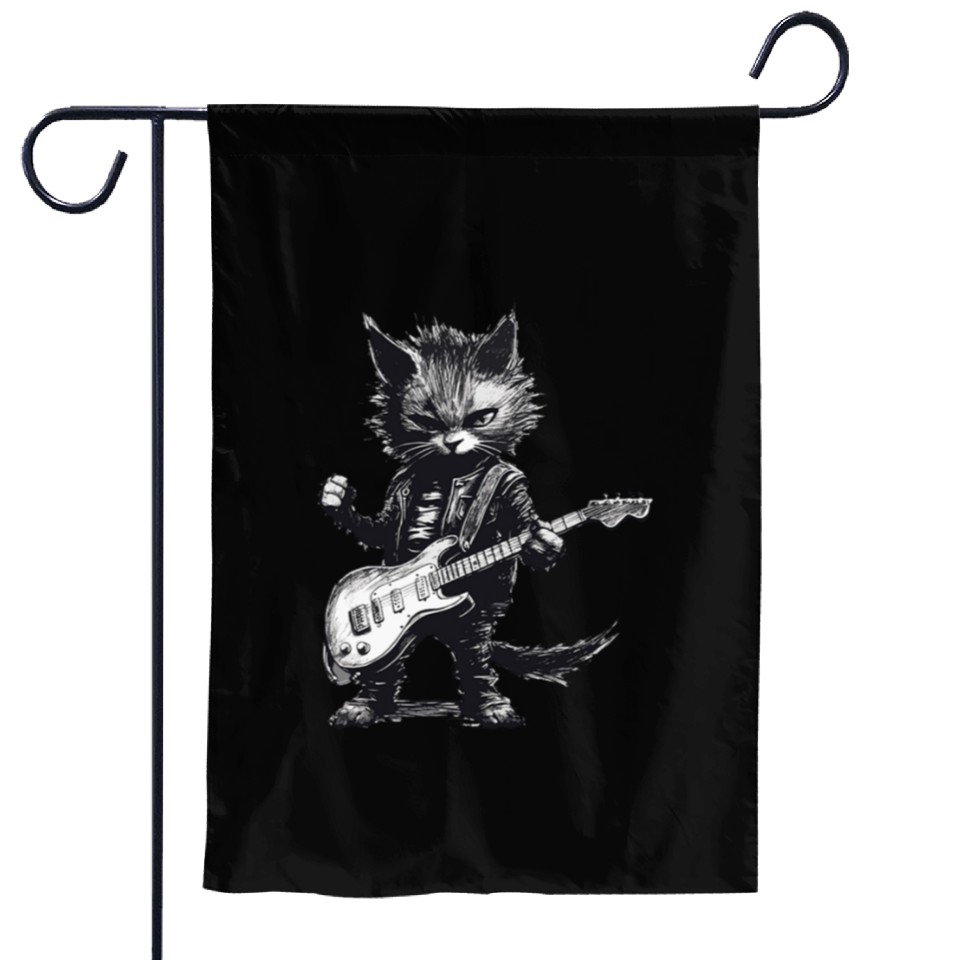 You are shopping for a stunning and trendy product Rock And Roll Cat Guitar Garden Flags - Music Cat Garden Flags For Black belong theme Garden Flags at Printblur