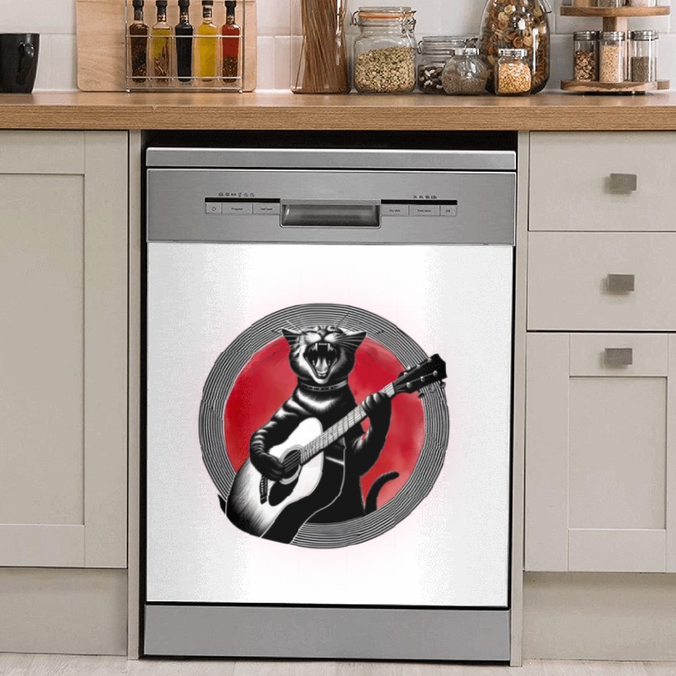 Shop for attractive Rock Cat Playing Guitar Dish Washer Covers under the red moon or see more Dish Washer Covers products on https://printblur.com right now!