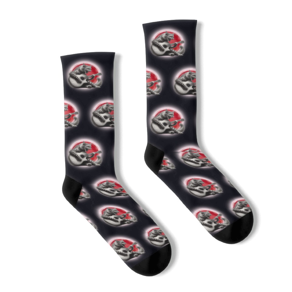 The item hot trend you're looking at is Rock Cat Playing Guitar Socks under the red moon For Black belong theme Socks at Printblur