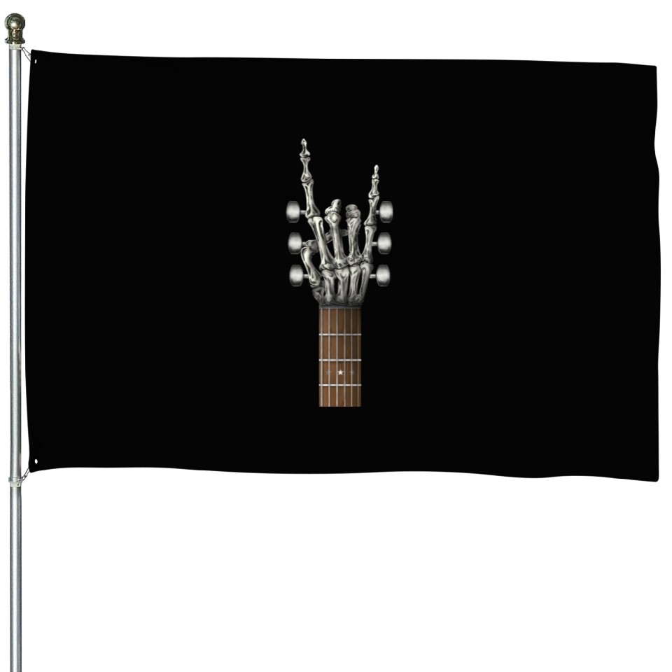 You're looking at the eye-catching product Rock On Guitar Neck Skeleton Hand Sign Rock & Roll House Flags For Black belong theme House Flags at Printblur
