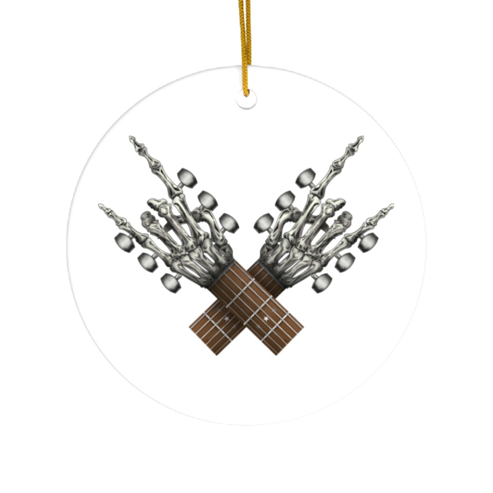 You are viewing an exclusive and elegant product Rock On Guitar Rock & Roll Halloween Skeleton Hand Ceramic Ornaments For WHITE belong theme Ceramic Ornaments at Printblur