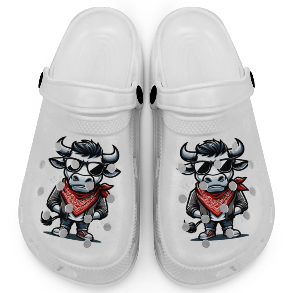 The product unique design you searched for is Rodeo Bull Riding Livestock Show Farmer Cattle Clogs For Kids WHITE belong theme Clogs at Printblur