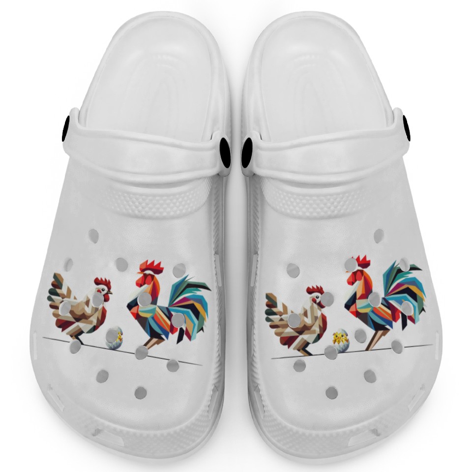 Rooster, Hen, and Chick – Geometric Easter Motif Clogs
