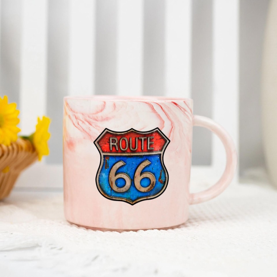 You are viewing one of the trendiest products Route 66 vintage sign - Rusty metal Marble Mugs For Pink belong theme Marble Mugs at Printblur