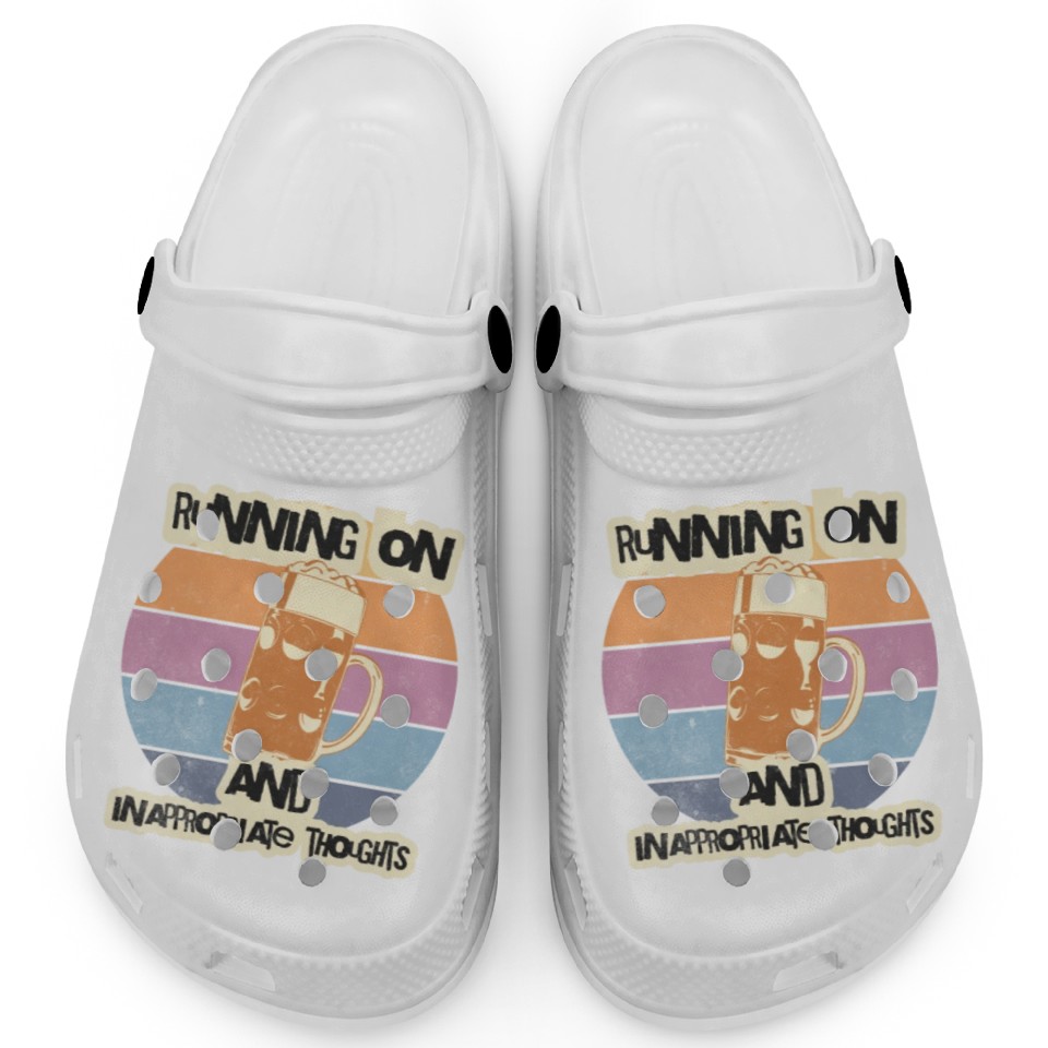 You're looking at the eye-catching product Running On Beer And Inappropriate Thoughts Clogs For Kids WHITE belong theme Clogs at Printblur