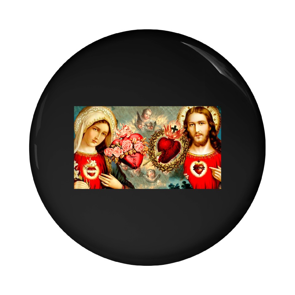 You are viewing an exclusive and elegant product Sacred Heart and Immaculate Heart Jesus and Mary Pin Buttons For Black belong theme Pin Buttons at Printblur