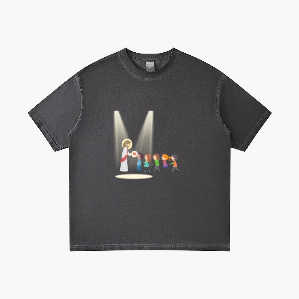 You are viewing an exclusive and elegant product sacred heart of jesus Gradient T Shirts For Men Washed Black belong theme Gradient T-Shirts at Printblur