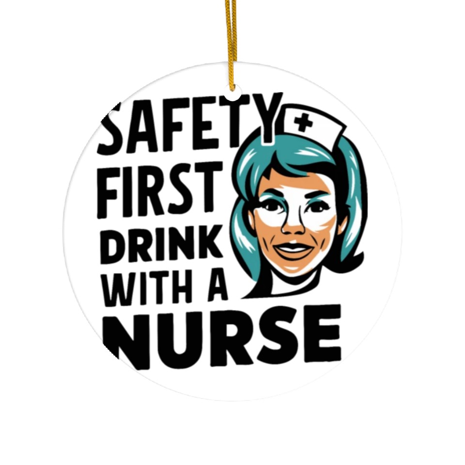 Shop for attractive Safety first drink with a nurse Ceramic Ornaments or see more Ceramic Ornaments products on https://printblur.com right now!