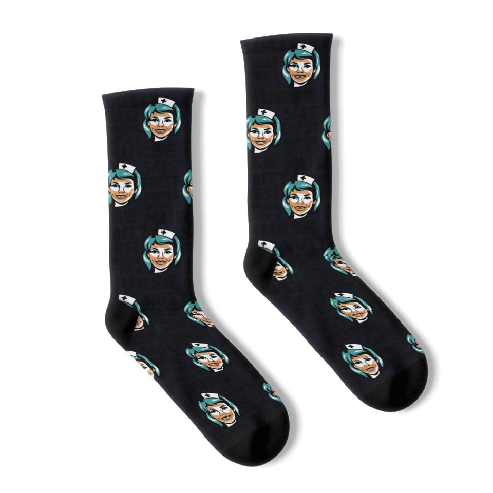 Own fascinating Safety first drink with a nurse Socks or see more Socks products now from Printblur shop to enjoy your shopping time!