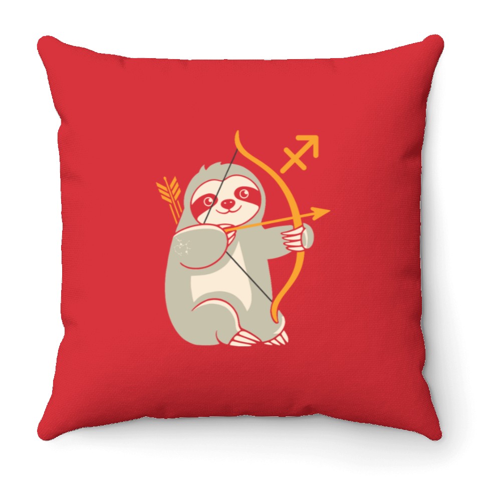 You're taking a peek at the product Sagittarius Zodiac Sloth Archer Adventure Throw Pillows For Cover Only Red belong theme Throw Pillows at Printblur