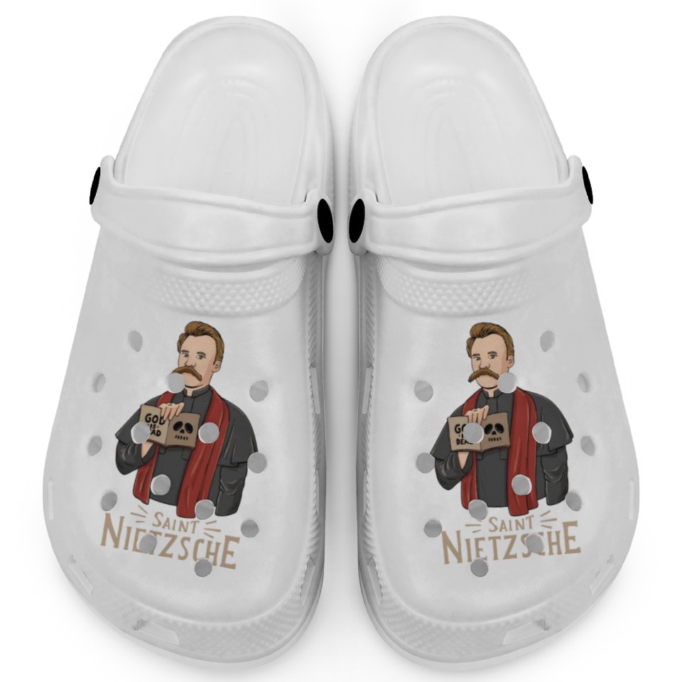 Buy eye-catching Saint Nietzsche Design for a Philosophy Student Clogs or see more Clogs products at Printblur shop now to explore many surprises from our shop!