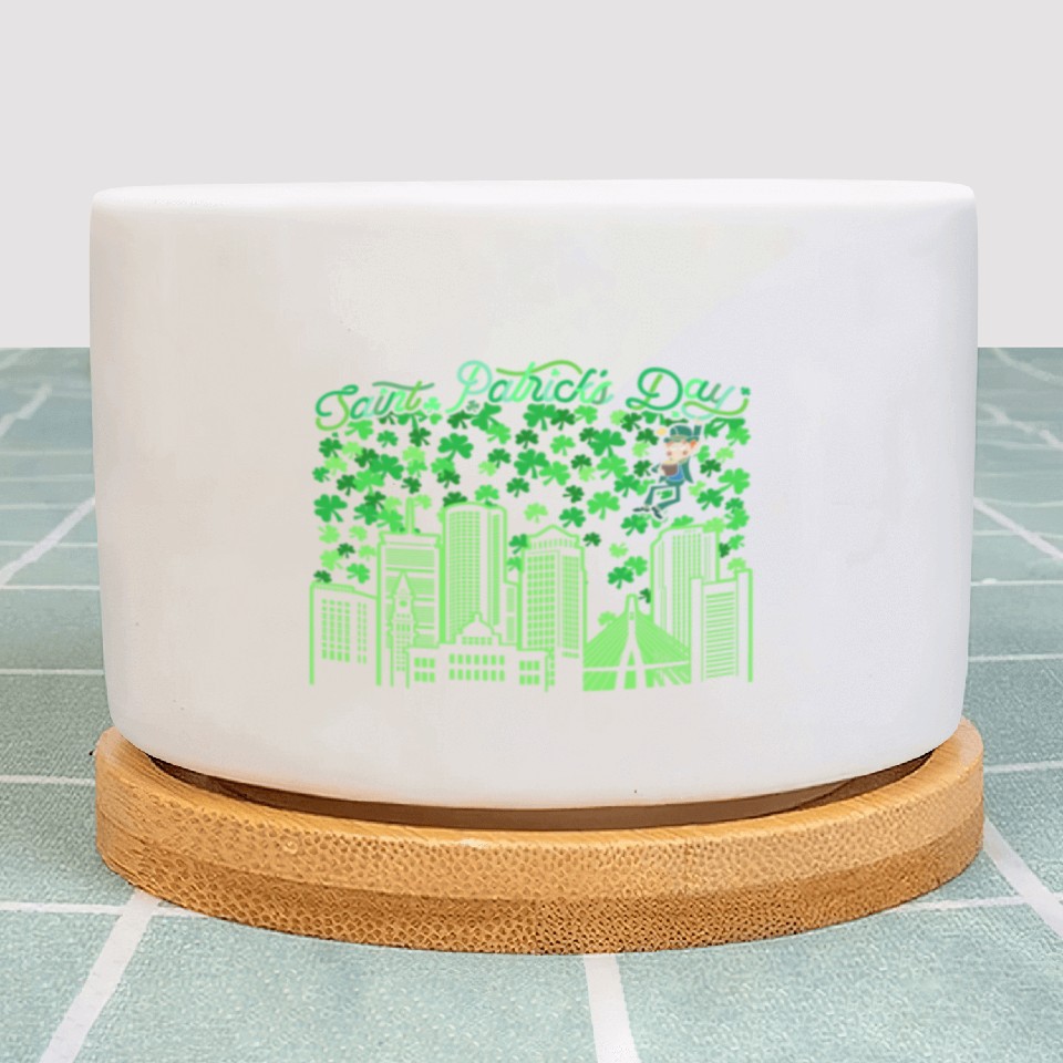 You're looking at the eye-catching product Saint Patrick's Day Boston Massachusetts Plant Pots For WHITE belong theme Plant Pots at Printblur