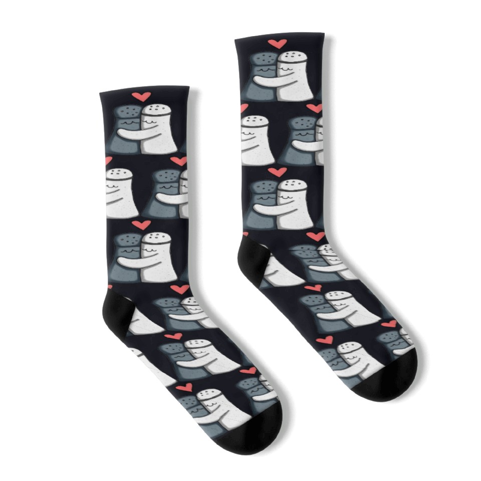 Shop for impressive Salt and Pepper Hugging Love : Funny illustration Socks or see more Socks products right now on Printblur to enjoy your happiness!
