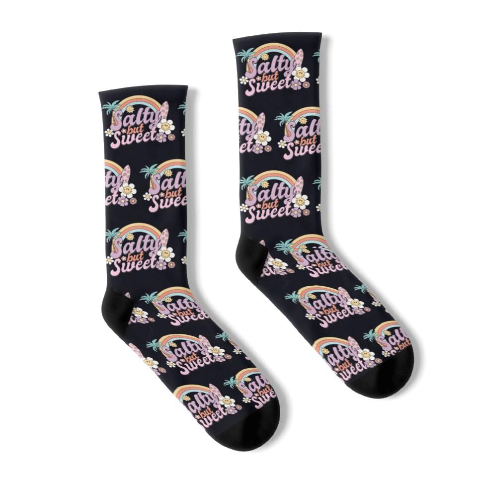 You're taking a peek at the product Salty but Sweet, Summer, Retro, Socks For Black belong theme Socks at Printblur