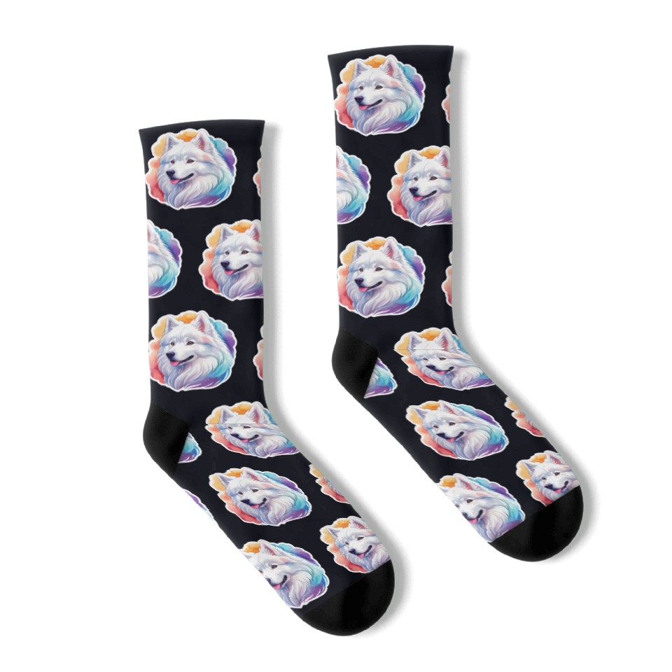 You are shopping for a stunning and trendy product Samoyed Dog Watercolor Socks For Black belong theme Socks at Printblur