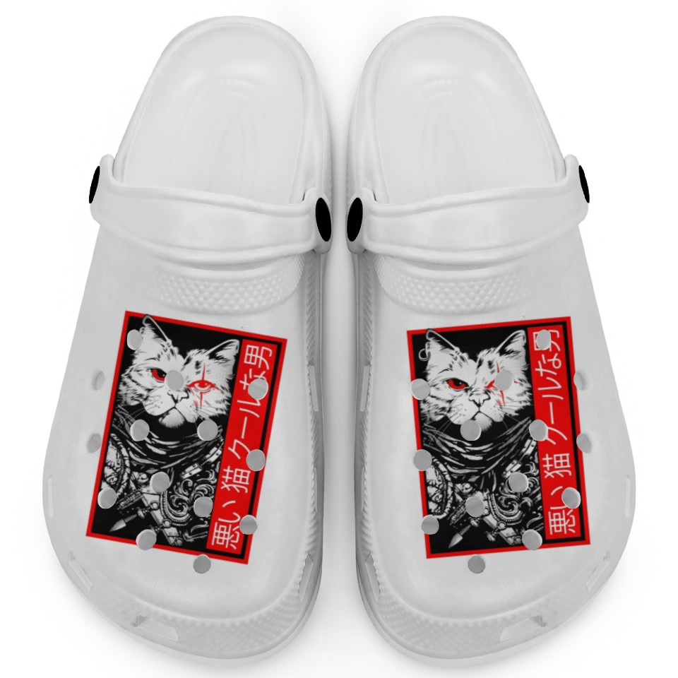 You are viewing an exclusive and elegant product Samurai Cat: "Bad Cat, Cool Dude" with Japanese Te Clogs For Kids WHITE belong theme Clogs at Printblur