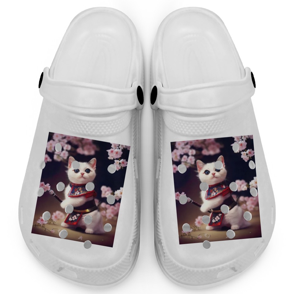 The product unique design you searched for is Samurai Cat Clogs For Kids WHITE belong theme Clogs at Printblur