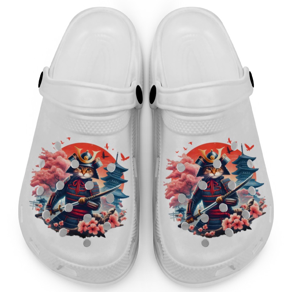 Samurai Cat Graphic Warrior Vintage Japanese Anime Clogs
