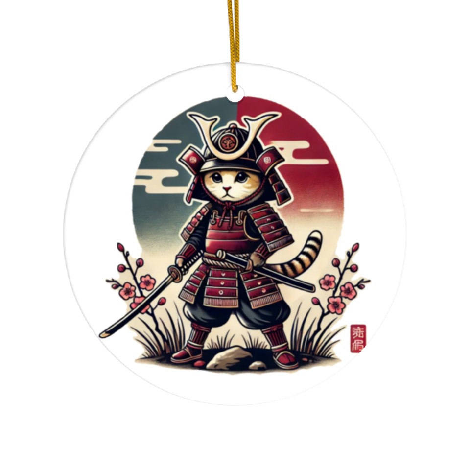 The item hot trend you're looking at is Samurai Cat: Vintage Ukiyo-e Warrior Art Ceramic Ornaments For WHITE belong theme Ceramic Ornaments at Printblur