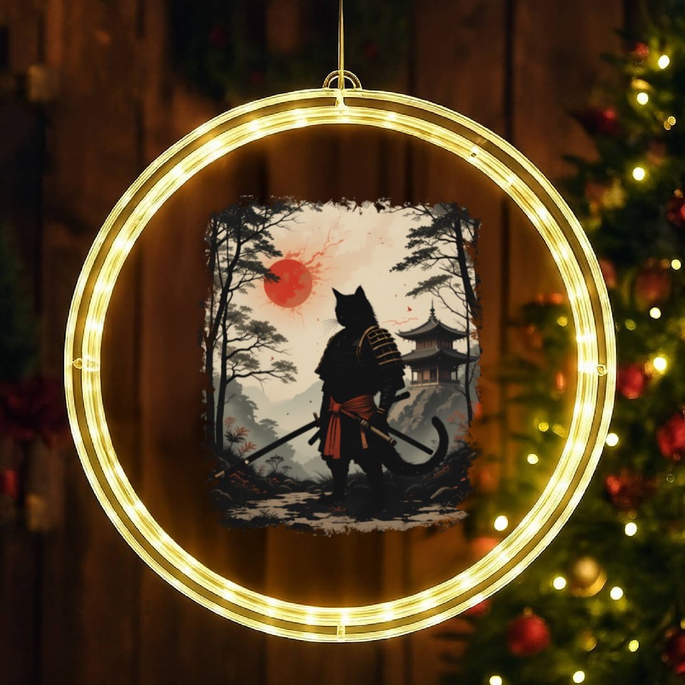You are shopping for a stunning and trendy product Samurai Cat Warrior LED Christmas Window Lights Design For belong theme LED Christmas Window Lights at Printblur