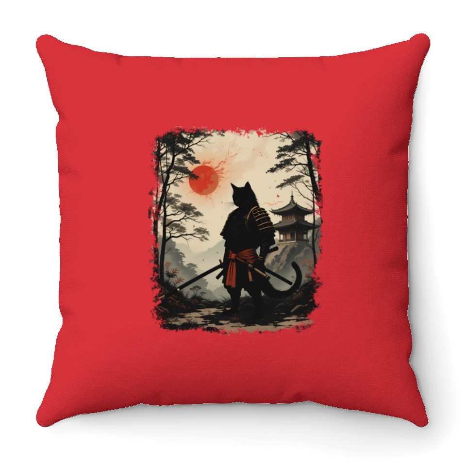 You are viewing one of the trendiest products Samurai Cat Warrior Throw Pillows Design For Cover Only Red belong theme Throw Pillows at Printblur