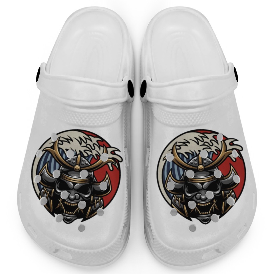 Buy eye-catching Samurai japan graphic grey mask Clogs or see more Clogs products at Printblur shop now to explore many surprises from our shop!