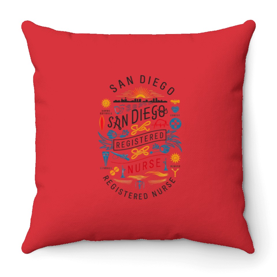 You are seeing a unique and impressive product San Diego Registered Nurse Skyline Tribute Graphic Throw Pillows For Cover Only Red belong theme Throw Pillows at Printblur